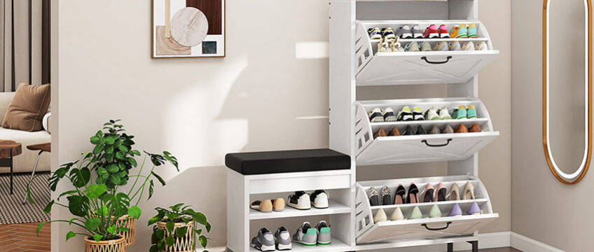 Shoe Cabinet with 2 Flip Drawers Narrow Shoe Storage Cabinet Organizer, $89